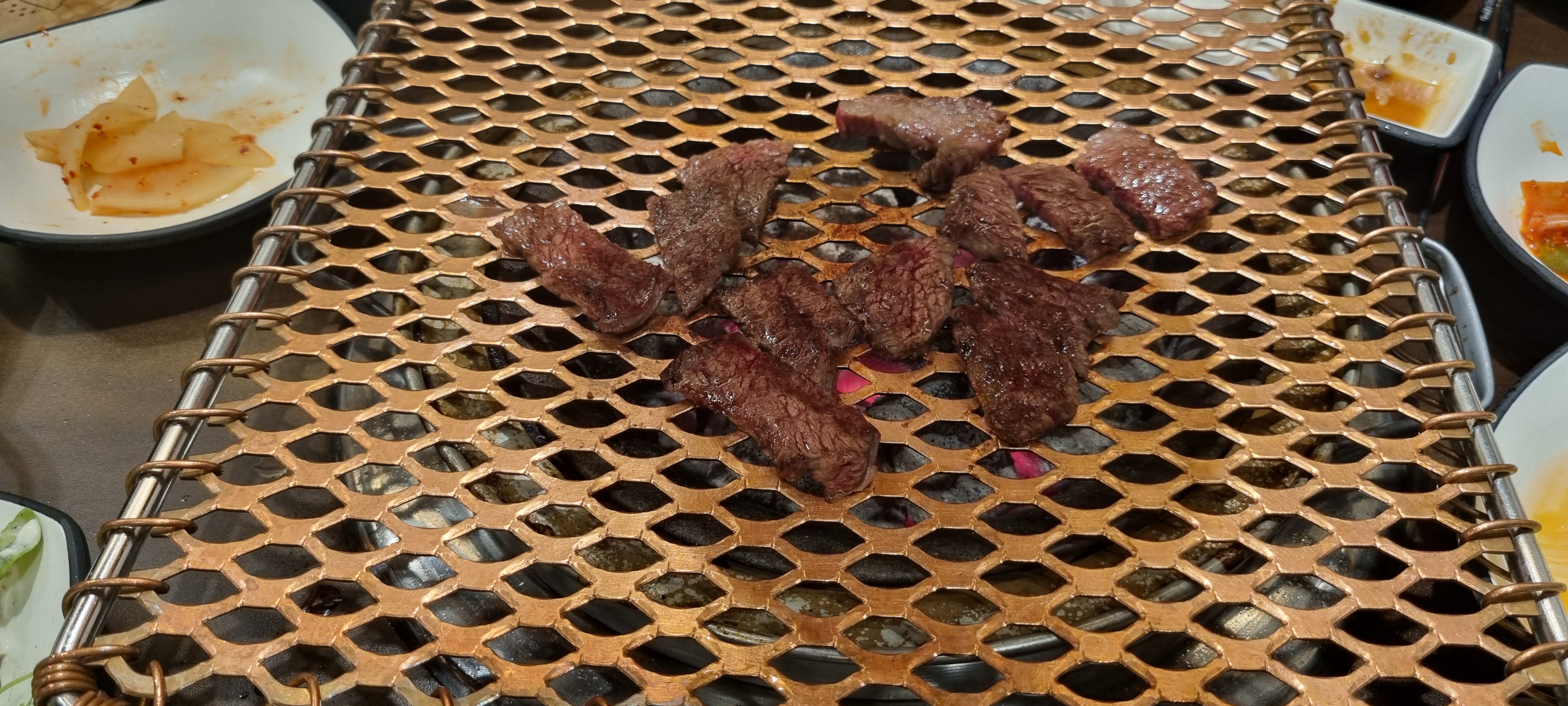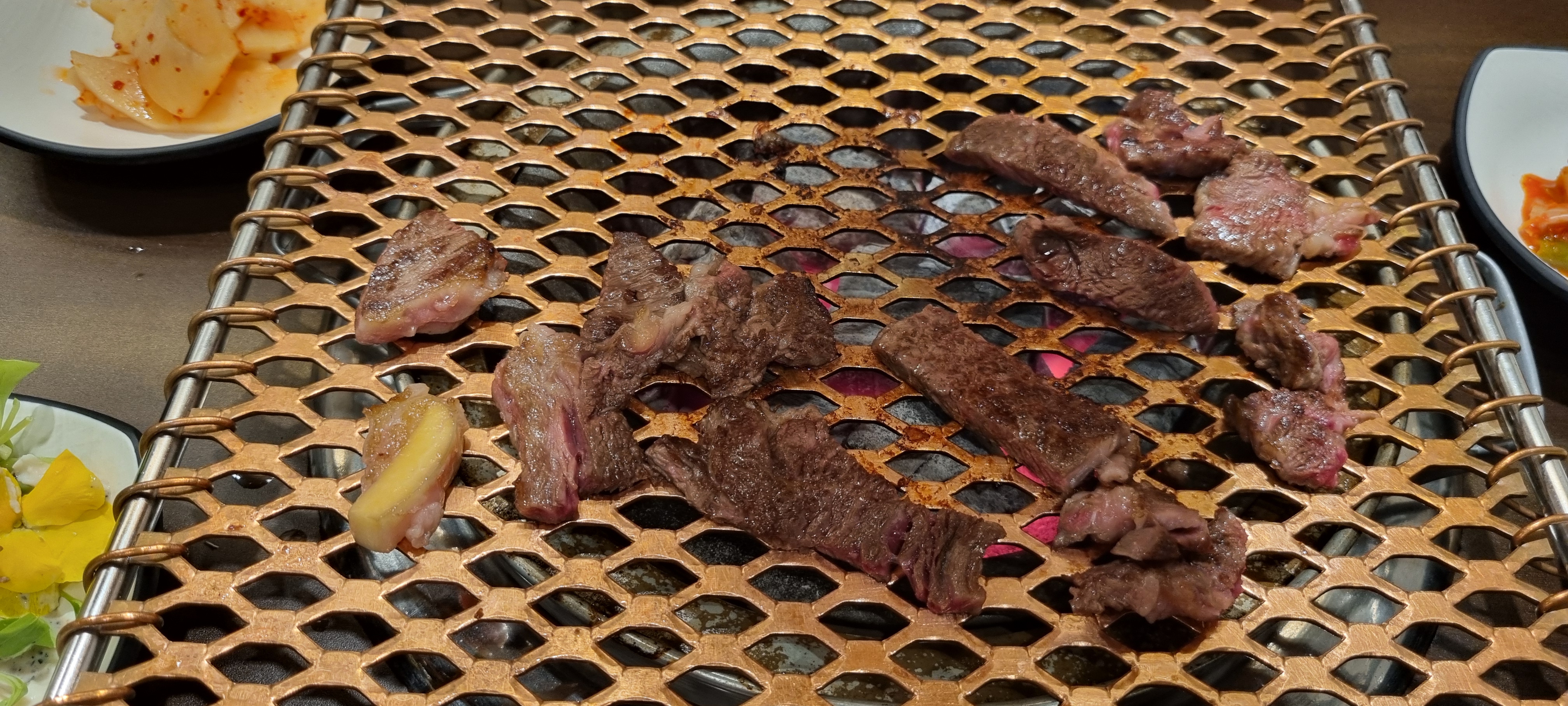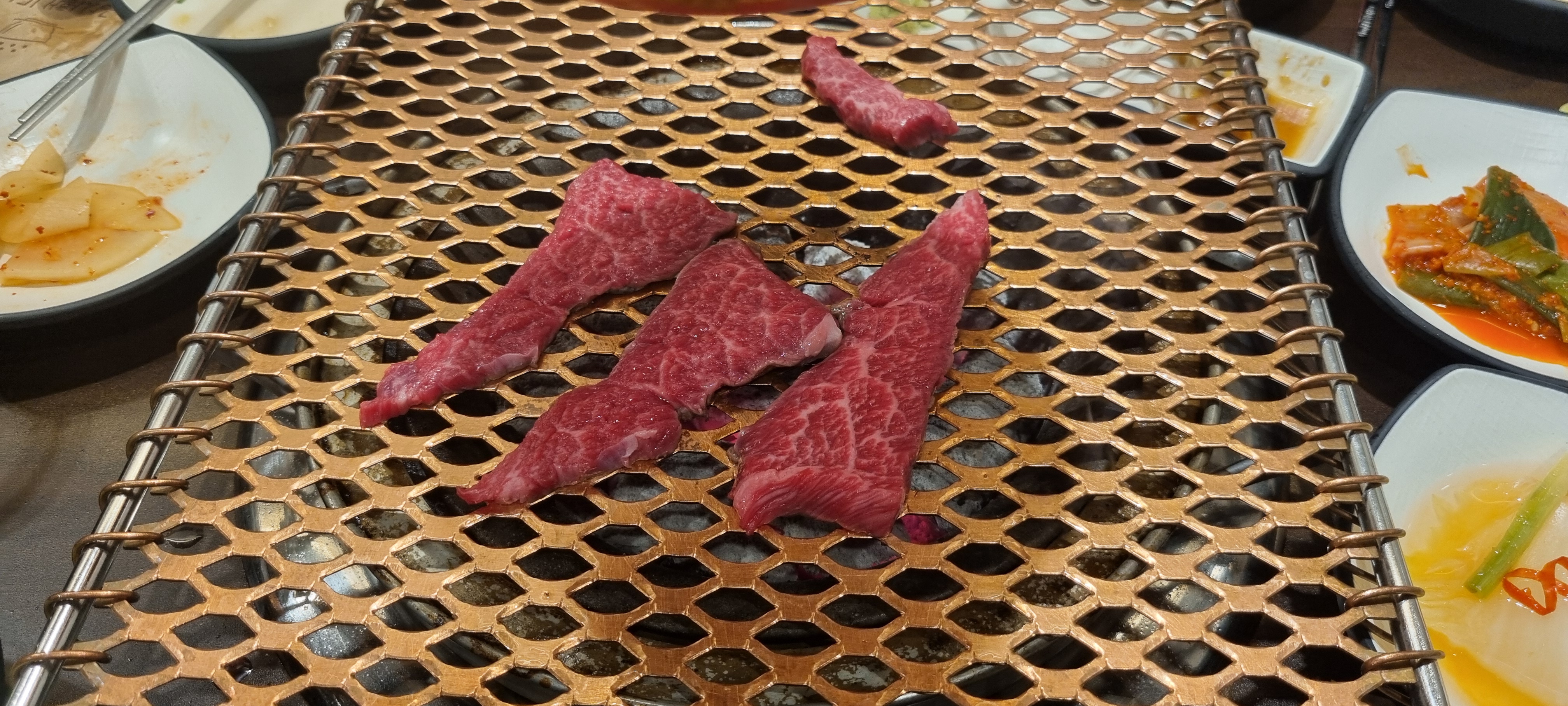 등심부터 불판에 올립니다. 두께가 적당해서 굽기가