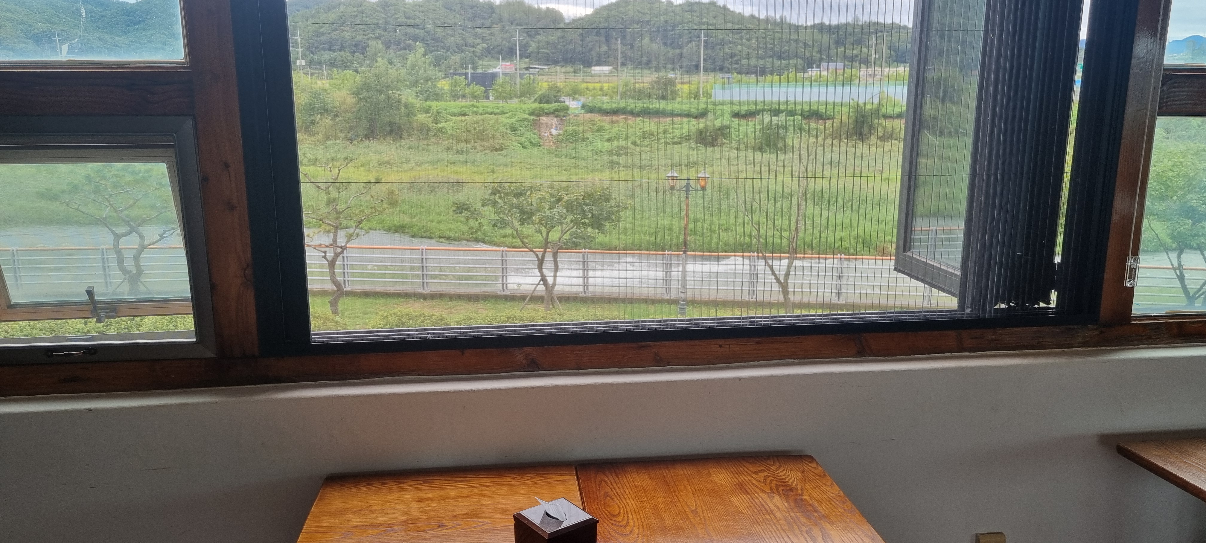 배가 부르면 휴게실에서 경치 감상하세요
