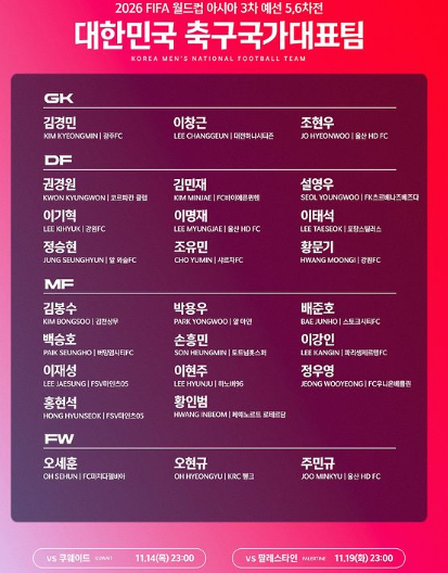 홍현석, 황인범, 김봉수, 박용우, 배준호, 백승호,