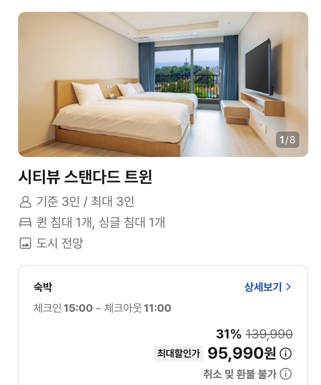 3인 (더블 + 싱글) 숙소